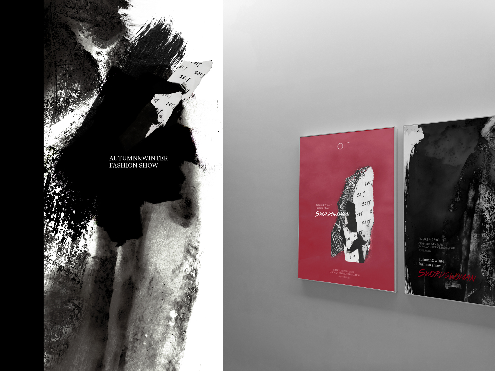 设计师女装品牌OTT的服装秀主题视觉。当季以唐代“红拂女”为设计灵感。在视觉形象方面采用了红拂女夜奔李靖的小说故事为主线展开,从侧面选取了战争和自然景物的意向,来烘托环境以及人物的故事情节,并且尝试利用纸艺、水墨等综合材料进行画面构建,呈现出丰富的感官效果。